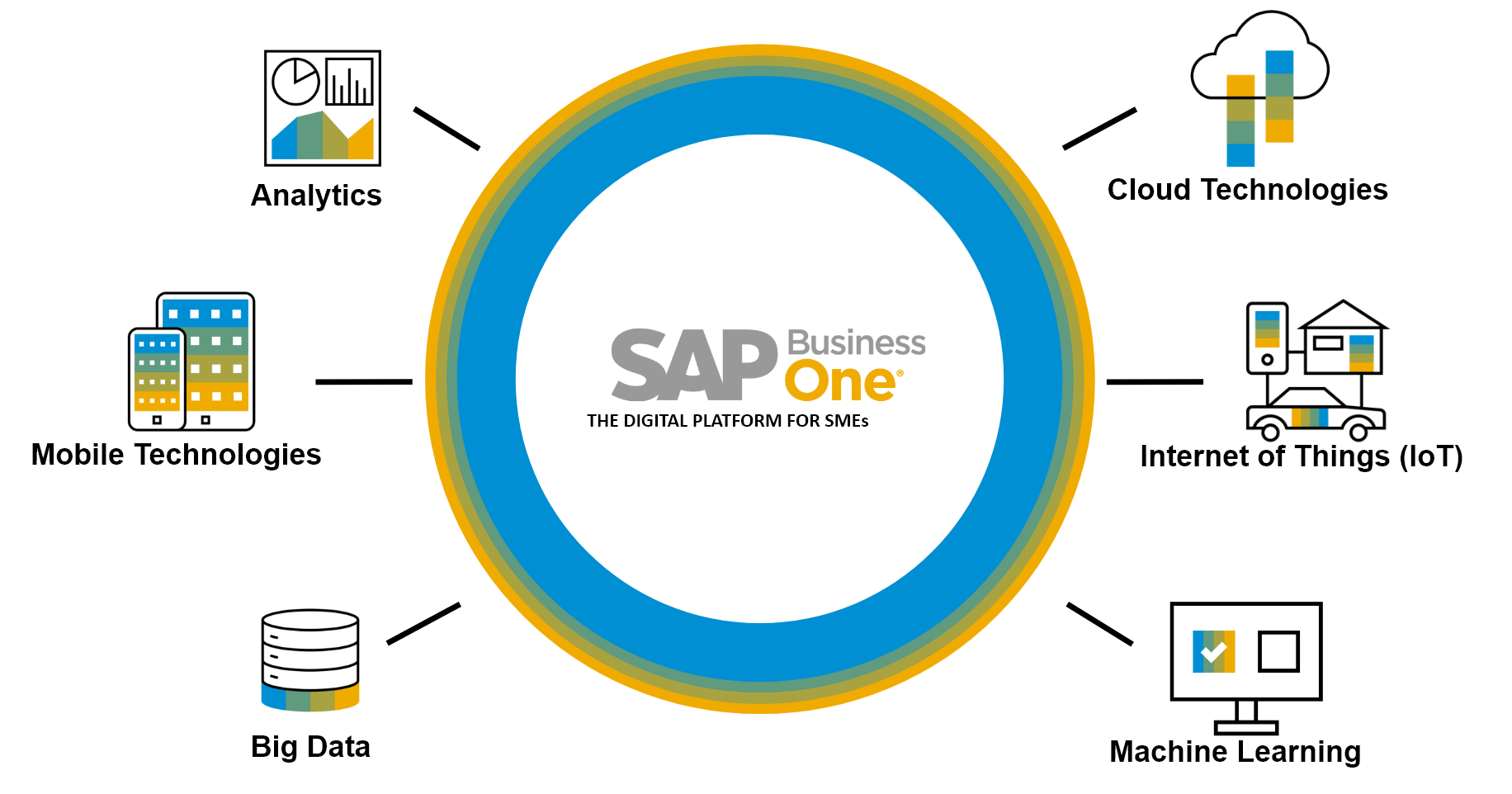 • SAP Business One for HANA is a technologically advanced platform for building tailored business solutions for companies of all sizes, from a variety of industries.